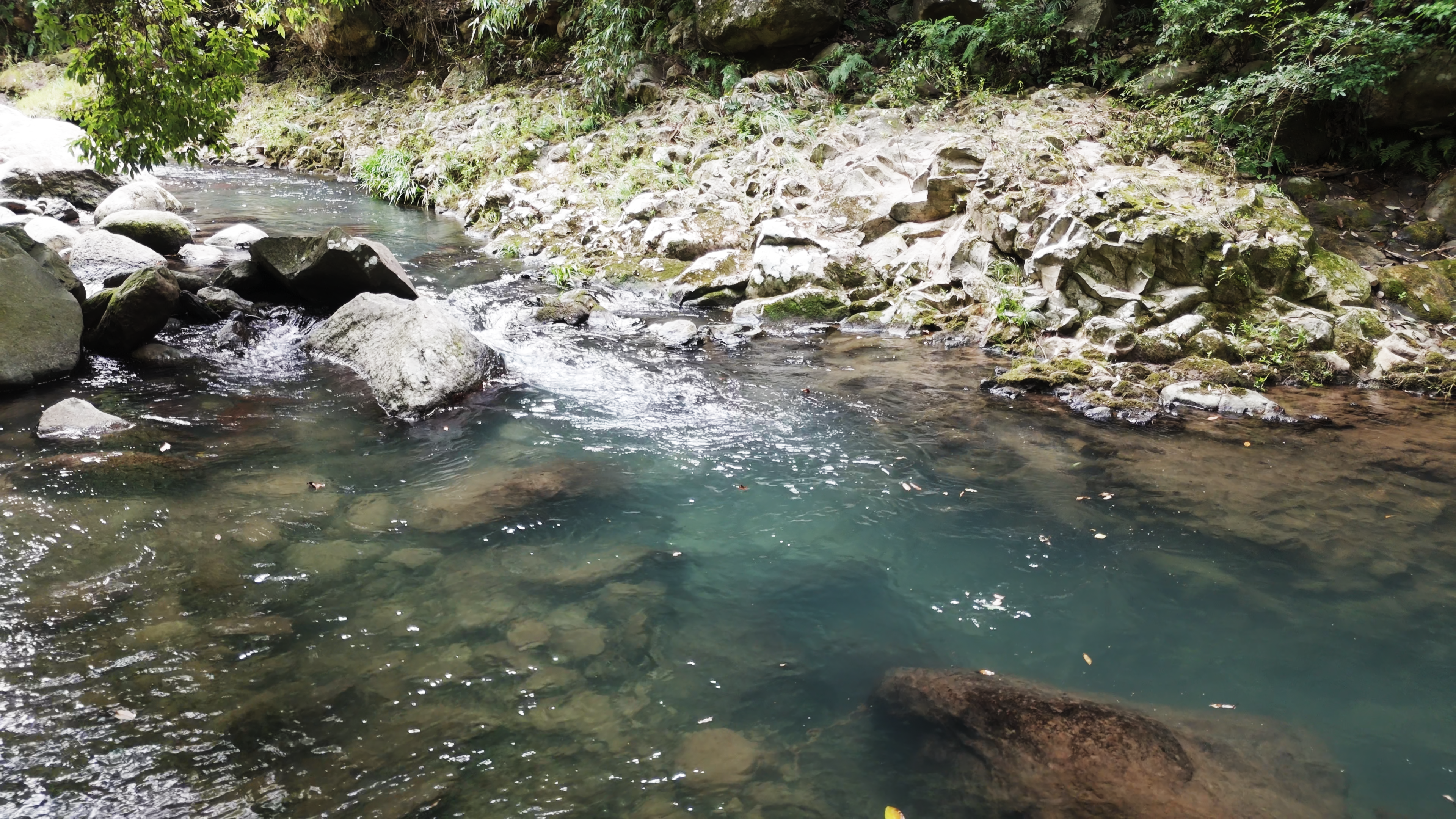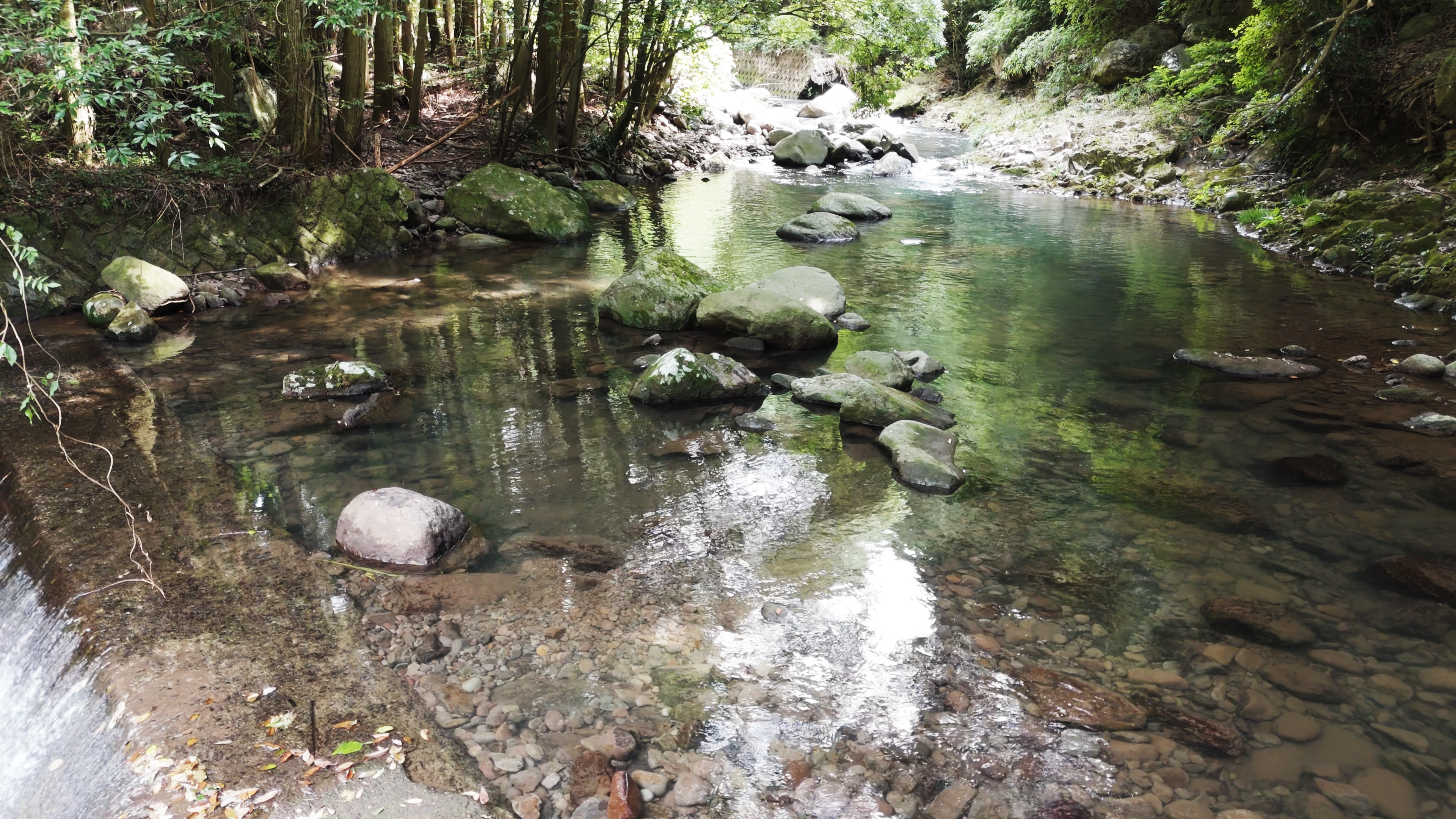 深い部分は、水深が1.5メートルほどあります。この深さでも、川底に沈んだ岩や石が綺麗に見えるほど透き通っています。こんなに綺麗な水でお米を作っているところは、めったにないと思います。